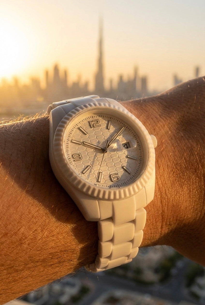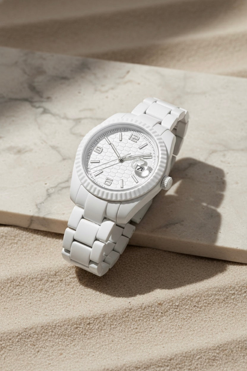 The Qamari Fajr is inspired by the calm of early morning. With its bright white finish and clean, minimal dial, this watch brings a fresh and modern look that feels clear and effortless with any outfit.